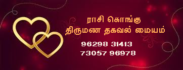 ராசி கொங்கு திருமண தகவல் மையமானது கடந்த 2019 ஆம் ஆண்டு முதல் ஈரோடு மாவட்டம் புன்செய்ப்புளியம்பட்டியில் சிறப்பாக செயல்பட்டு வருகிறது. ராசி கொங்கு திருமண தகவல் மையம் முறையாக பதிவு செய்து அரசு அனுமதியுடன் செயல்பட்டு வருகிறது.